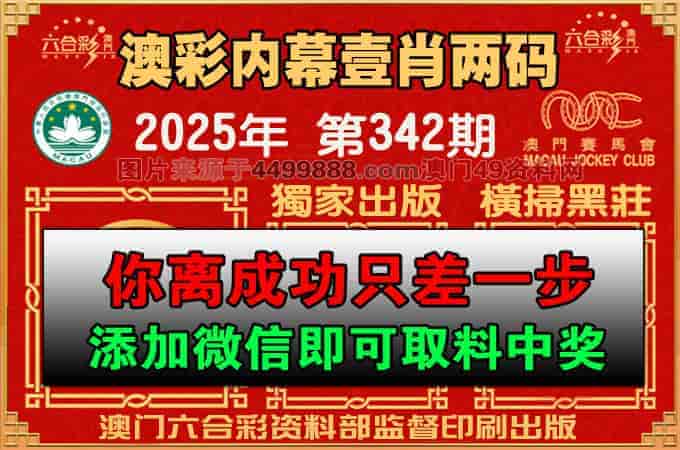 342期:【澳彩内幕】〓①肖二码〓全网最稳